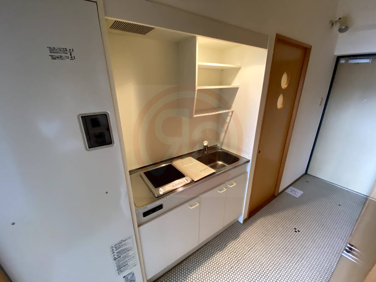 1口IHコンロが備わったキッチンは、自炊派の一人暮らしにも使いやすいコンパクト設計です。シンク下には収納スペースがあり、調理器具や食器を整理整頓しやすく、キッチン周りをスッキリ保てます。作業スペースも確保されており、簡単な調理や朝食の準備など日常使いに便利です。また、IHコンロは火を使わず安全性も高いため、安心して調理が楽しめます。