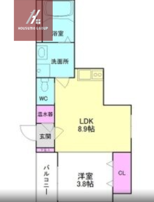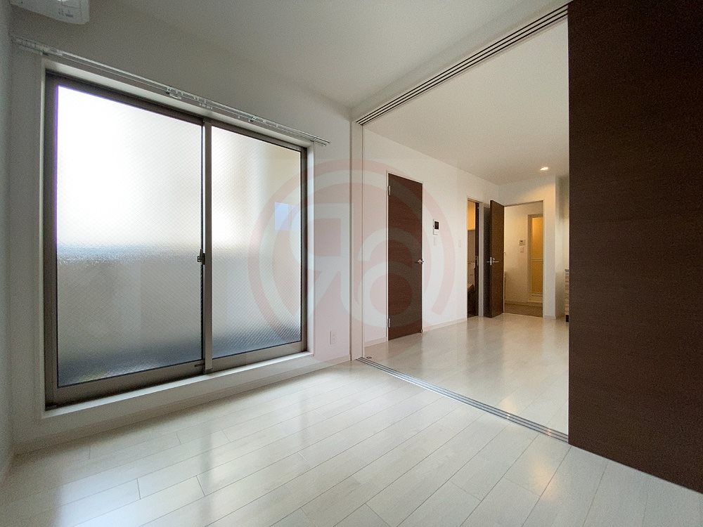 8.9畳のLDKは、明るい窓から自然光が差し込む開放的な空間です。コンパクトながらも家具の配置がしやすく、壁付きキッチンなので自然とゾーニングできるので、ソファやダイニングテーブルを置いても動線が確保できる設計です。3.8畳の洋室は、寝室としても書斎としても利用可能で、東向きの大きな窓は通風性も良く、心地よい朝の光で目覚めることができます。