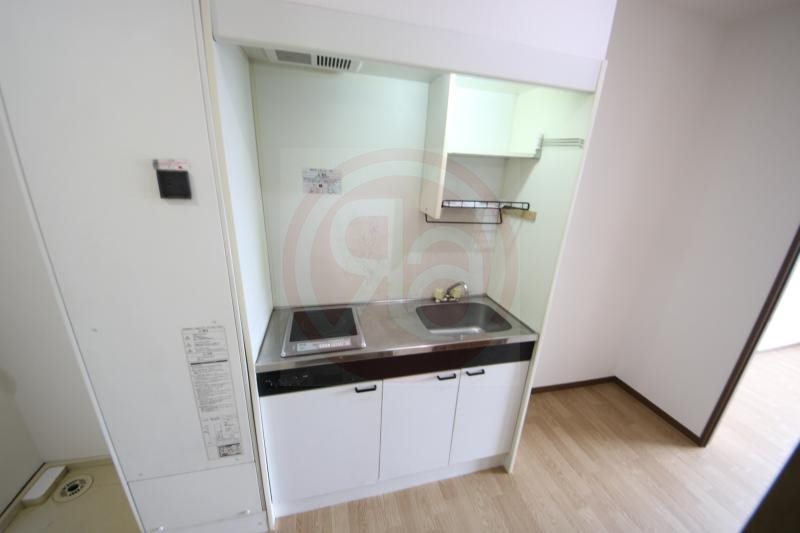 キッチンは1口IHコンロで、火を使わない安心設計なので、調理器具の焦げ付きも少なく、掃除も簡単です。自炊が初めての方でも扱いやすく、ちょっとした調理や軽食作りに最適です。収納も下部に設けられており、調理器具や食器をきちんと整理可能です。
