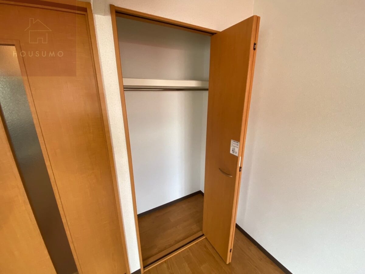 洋室にはコンパクトながらも実用的なクローゼットを完備。日常使いの衣類や小物を整理して収納でき、部屋をすっきりと保つことが可能です。さらに洋室の扉上にはちょっとした棚も設置されており、帽子や小物、季節の雑貨など、すぐに取り出したい物を置くのに便利です。限られたスペースでも収納力を工夫し、快適な暮らしをサポートしています。