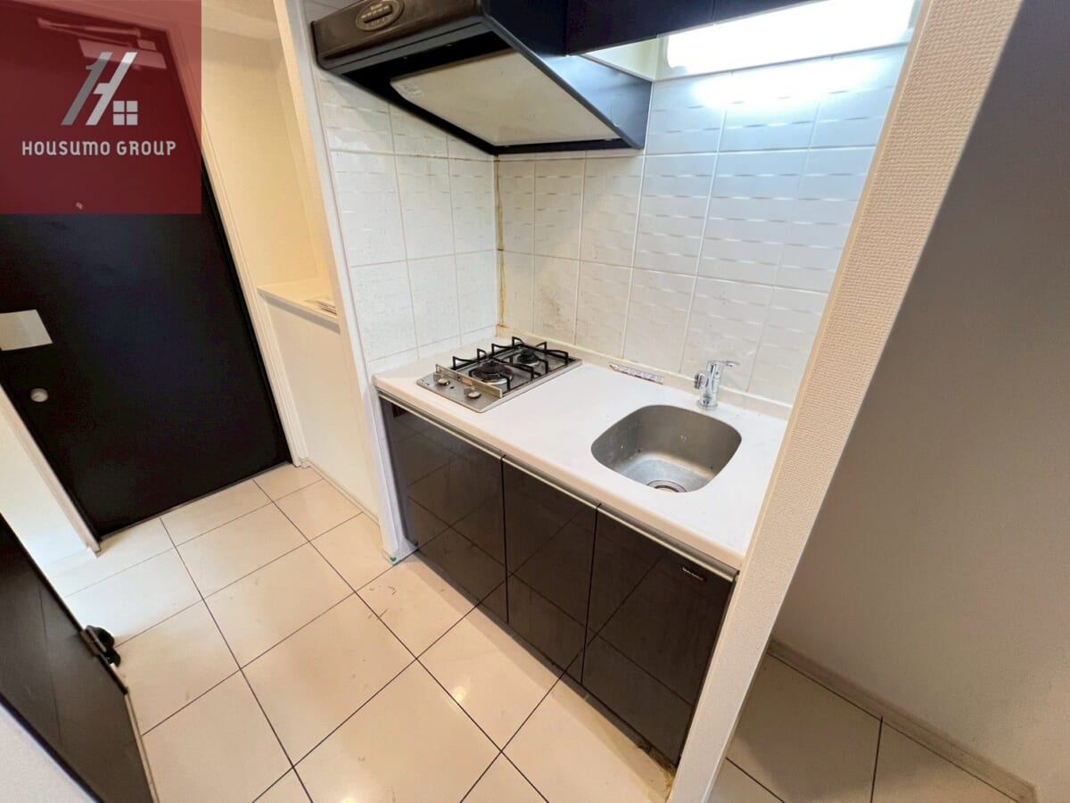 キッチンはコンパクトながら使い勝手を重視した設計で、縦型2口ガスコンロを完備。調理スペースも確保されており、自炊派の方にも嬉しい環境です。上下に収納スペースがあり、食器や調理器具を整理しやすく、作業効率が上がります。キッチン周りはお掃除も簡単で、常に清潔な状態を保てます。