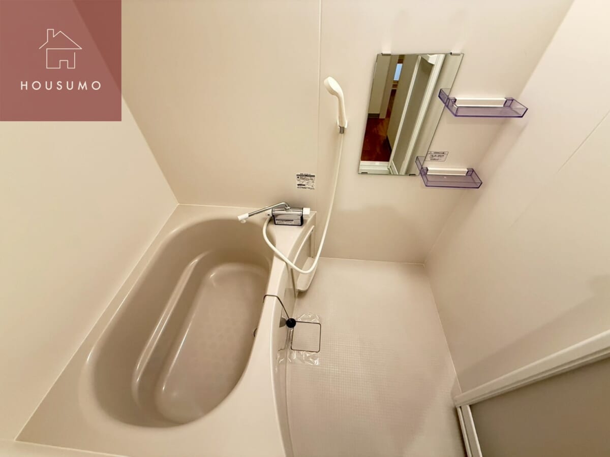 バスルームはシンプルで無駄のない造りになっており、毎日の入浴を快適にサポートしてくれます。掃除もしやすく、清潔感を保ちやすい点が魅力。浴槽は一人暮らしにちょうど良いサイズ感で、肩までしっかり浸かれるため、日々の疲れを癒すリラックスタイムを確保できます。シンプルだからこそ、バスグッズや小物で自分好みの空間にアレンジしやすいのもポイントです。