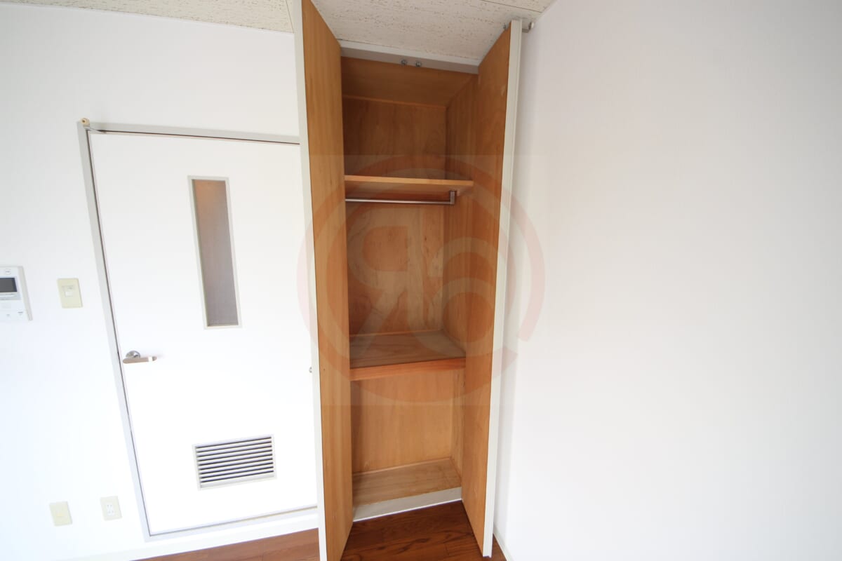 クローゼットはコンパクトですが、ハンガーラッグ付きで、シャツ類はしわなくかけることができます。入りきらないオフシーズンの衣類はボックス収納やベッド下収納などで補うのがおすすめ。限られたスペースを有効活用することで、スッキリとした暮らしが実現します。