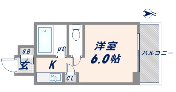 6畳の洋室はシンプルな長方形で、家具の配置がしやすく、一人暮らしの転勤者の方でもスムーズに生活動線を確保できます。フローリングはナチュラルな色合いで、どんなインテリアも馴染みやすく、デスクやベッド、収納家具をバランスよく置けるのも魅力です。また、角部屋ではないものの、静かで落ち着いた空間が確保されており、集中して在宅ワークや趣味の時間を楽しむことができます。