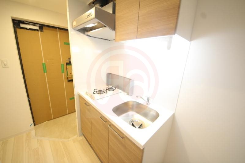 キッチンはコンパクトながら使い勝手を重視した設計で、縦型2口ガスコンロを完備。調理スペースも確保されており、同時調理が可能なので、自炊派の方にも嬉しい環境です。上下に収納スペースがあり、食器や調理器具を整理しやすく、作業効率が上がります。玄関すぐの間取りで匂いがこもりにくく、シンプルな動線でスムーズに料理ができる工夫が施されています◎