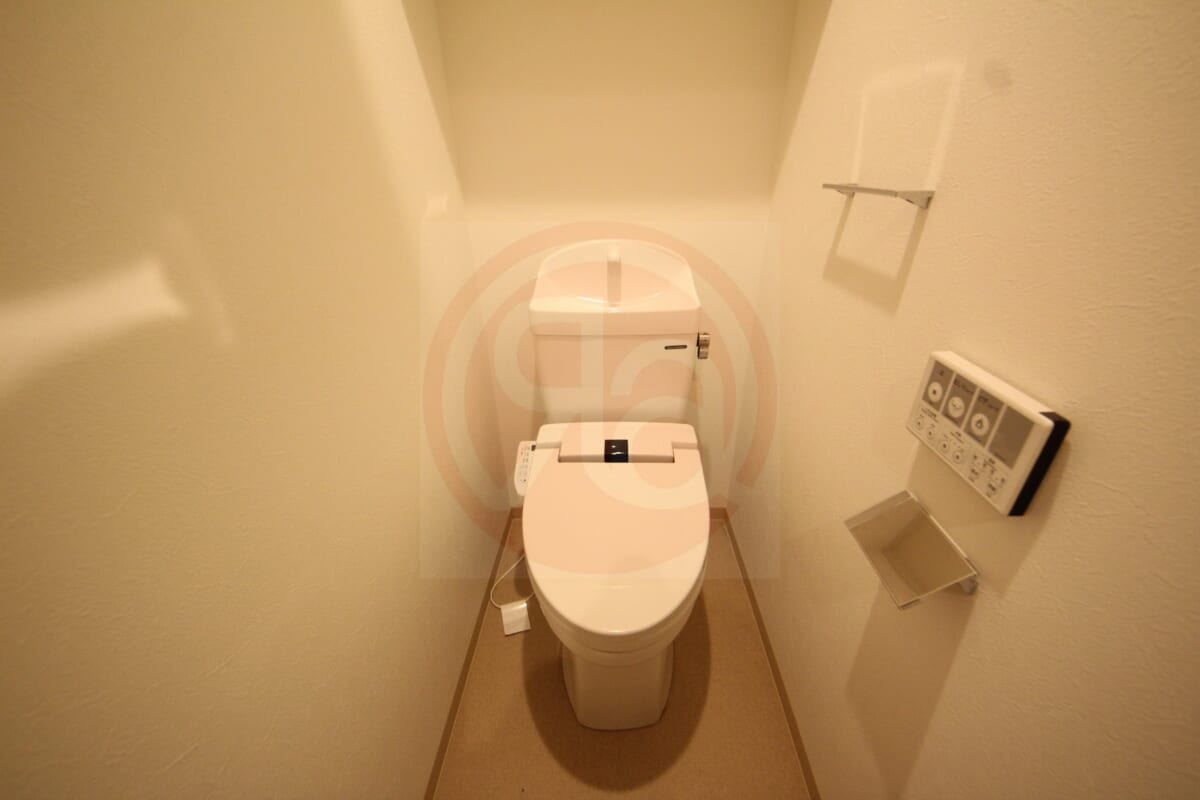 トイレには温水便座が設置されており、季節を問わず快適に使用できるのが魅力。毎日使う場所だからこそ、機能面がしっかり整っている点は安心感につながります。室内は白を基調とした清潔感のある空間で、明るくすっきりとした印象。お手入れもしやすく、常に気持ちよく保てる設計です。来客時にも好印象を与えてくれる、住まい全体の質を高めるトイレ空間となっています◎
