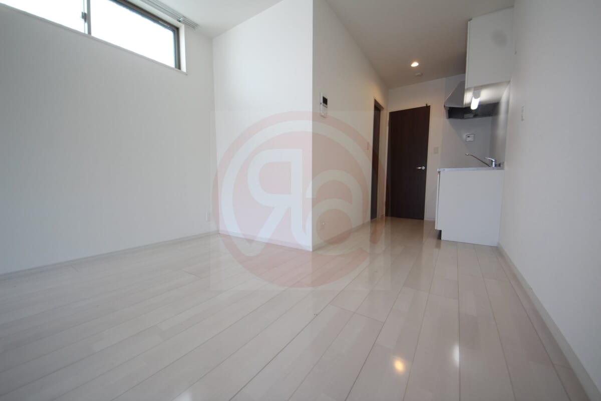 LDKは8.2畳の広さがあり、コンパクトながらも“暮らしのバランス”が取りやすい空間設計。上部には小窓があるので引き戸を閉じても適度に採光があり暗くなりすぎないのがうれしいポイントです。LDK奥の洋室は引き戸で仕切れる設計のため、空間の使い方に柔軟性があります。普段は扉を開けてLDKと一体利用すれば、実際の帖数以上の開放感を演出。就寝時や来客時には引き戸を閉めることで、しっかりとしたプライベート空間に切り替えられます。4.1畳ながらベッドの配置もしやすく、寝室や書斎としても活用できる万能な一室です◎