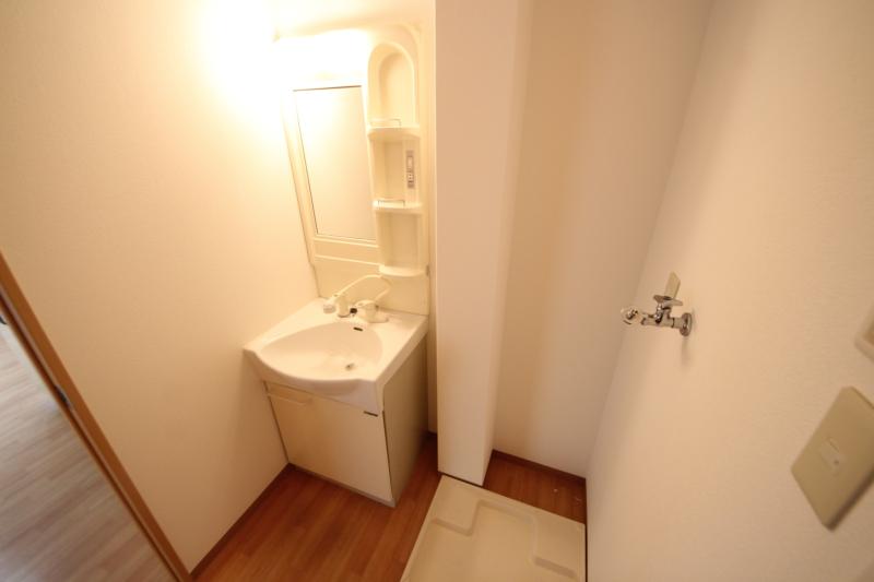脱衣室には、独立洗面台と洗濯機置き場が横並びで配置されており、朝の支度も洗濯も“その場で完結”できる使い勝手の良い空間です。動線が短く、洗濯物の予洗いから洗濯機へ移す流れが非常にスムーズ。忙しい日でもムダな動きがなく、家事効率をしっかり支えてくれます。独立洗面台は、身支度に必要なアイテムをまとめて置けるため、生活リズムを整えたい方にもおすすめです。シンプルながらも必要な機能が揃った脱衣室は、一人暮らしでも“自然と暮らしやすい”と感じられる実用的なスペースです◎