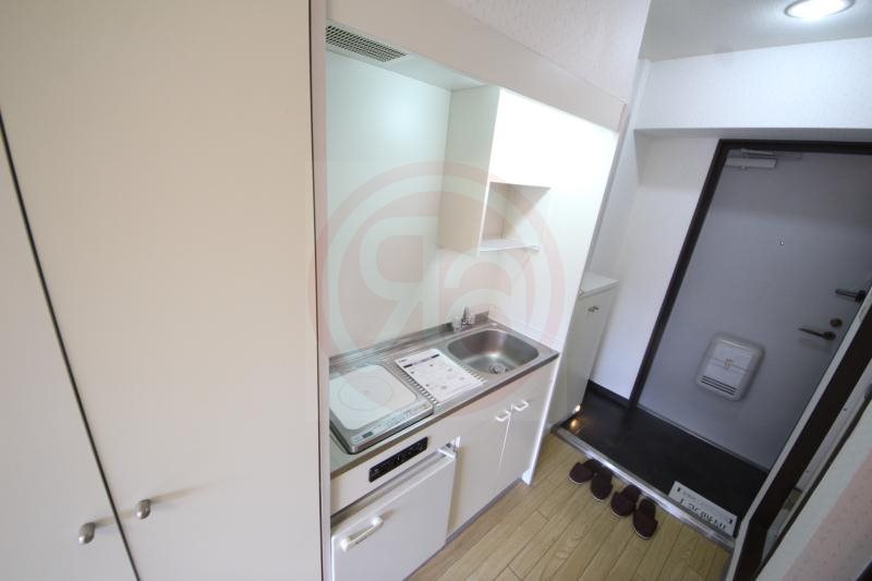 キッチンは1口IHコンロで、火を使わない安心設計なので、調理器具の焦げ付きも少なく、掃除も簡単です。さらに、ミニ冷蔵庫があらかじめ設置されているため、引っ越し時に新たに購入する手間も不要。一人暮らし初心者や自炊は最低限でOKという方にもぴったりの、コンパクトながら実用的なキッチンです。