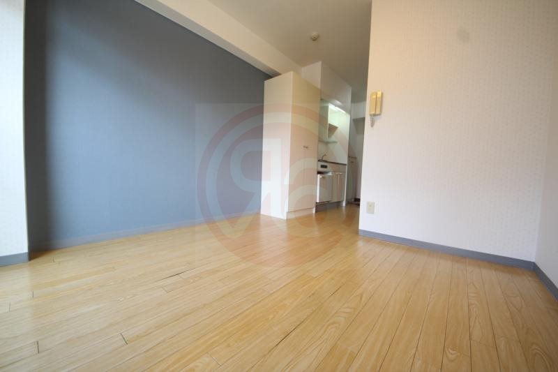6畳のワンルームは、無駄を省いたすっきりとした間取りで、落ち着いたブルーのアクセントウォールが派手すぎず、どこか知的で洗練された印象を与えてくれます。ベッドやデスクを配置しても空間がうるさくならず、一人暮らしにちょうどいい居心地を演出します。西向きのお部屋のため、午後から夕方にかけてやわらかな日差しが入り、仕事や外出から帰宅した時間帯に、ほっと一息つける明るさを感じられるのもポイントです。