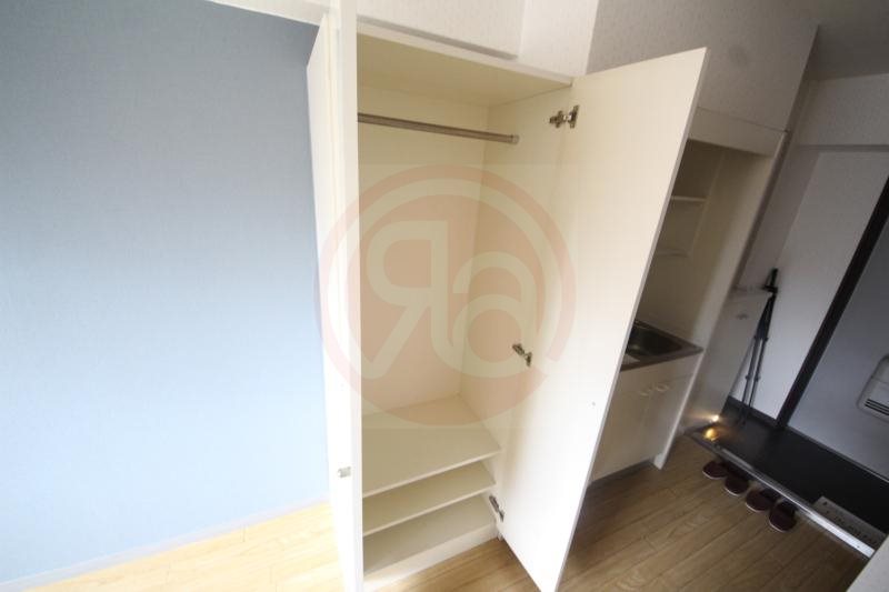 クローゼットは“奥行き”にゆとりがあるのがポイントです。幅自体は大きくないため大容量というわけではありませんが、高さもあるので、奥行きを活かして衣類の前後収納や、衣装ケースなども収めやすい構造で、見た目以上の収納力があります。また、ハンガーラックもあるので、丈の長いコートやシャツ類もしわなく収納することができます。