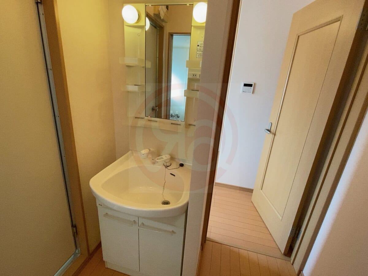 脱衣室には独立洗面台を備えており、身支度と生活動線をしっかり分けられる設計。入浴前後はもちろん、朝の準備や帰宅後の手洗いもスムーズに行えます。居室から程よく距離があるため、ワンルームや1Kにはない使い勝手の良さを実感できるポイント。コンパクトながらもプライベート性が保たれ、一人暮らしでも快適に使える脱衣スペースです。