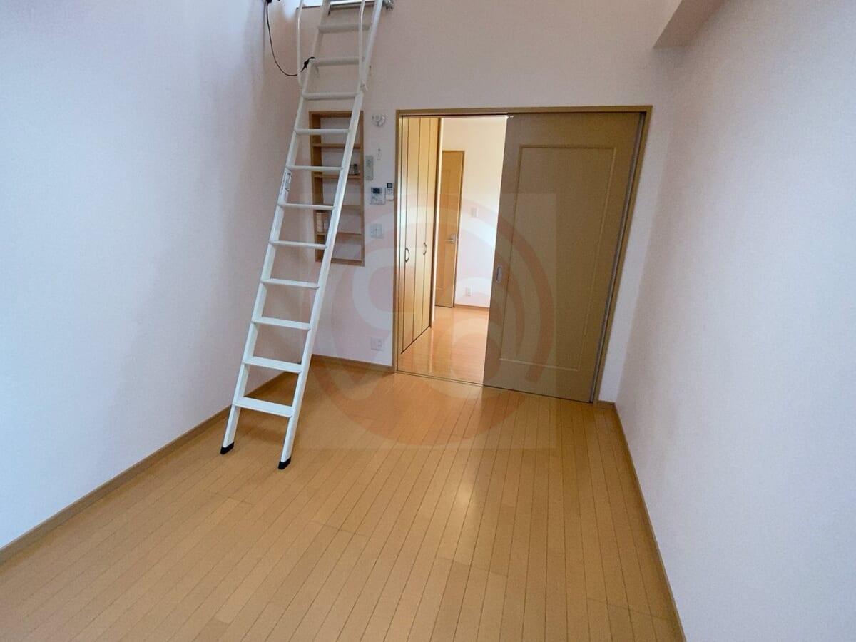 メインの洋室は6畳で天井が高めに設計されているため、数字以上のゆとりを感じられるのが特徴です。視線が縦に抜けることで、圧迫感がなく、初めての一人暮らしでも広々とした印象に。ベッド・デスク・テレビボードなど、生活の基盤を作る家具を置いても動線を確保しやすく、ミニマルにもこだわり派にも対応できる使いやすいレイアウトです。階段感覚で上がれるロフトは小窓があり明るく、1Kとは思えない“+1部屋”の感覚を楽しめます。天井高めの構造と相まって狭さを感じにくく、寝室として利用すれば、下のフロアが自然とリビング空間になります◎