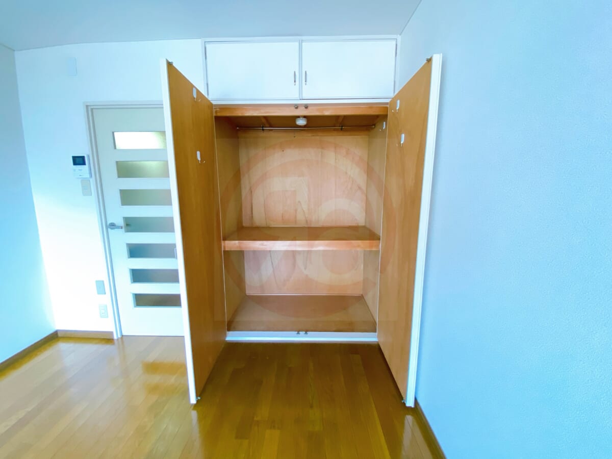 収納は洋室内に押し入れタイプを設置されており、奥行きがしっかりあるため、衣類はもちろん、スーツケースや季節家電、収納ケースなどもまとめて収めることができます。一般的なクローゼットとは異なり、上下・左右を自由に使えるのが押し入れタイプの魅力。ハンガーラックや収納ボックスを組み合わせることで、自分の生活スタイルに合わせた収納アレンジが可能です。「収納が少なくて部屋が散らかるのは避けたい」「9畳の洋室をできるだけ広く使いたい」という方にとって、居住スペースを圧迫しにくい実用的な収納設計となっています。