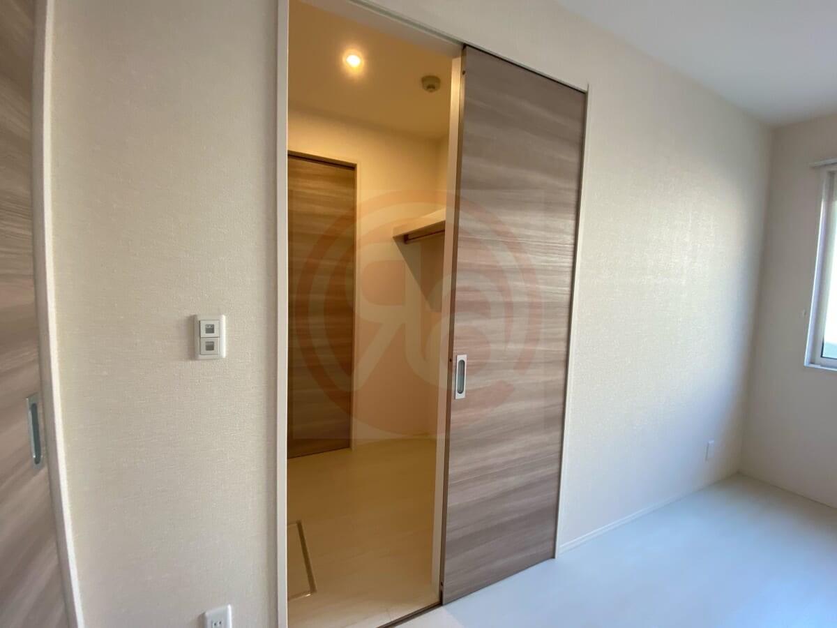洋室にはウォークインクローゼットを完備しており、収納力を重視したい方にも安心の仕様です。衣類はもちろん、季節物のアウターやバッグ、スーツケースなどもまとめて収納できるため、居室内に余計な収納家具を置く必要がありません。空間を広く使えることで、部屋全体がすっきりと整い、暮らしやすさが一段と高まります。日常使いから長期保管まで対応できる、実用性の高い収納スペースです。