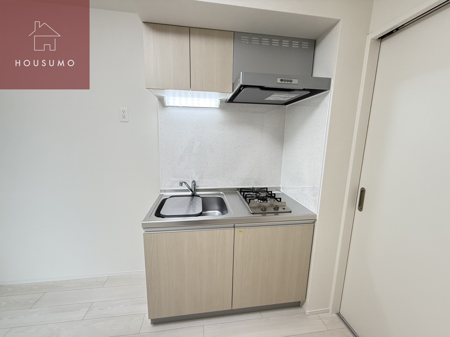 システムキッチンを採用しており、調理スペースがしっかり確保された使いやすいキッチンです。ガスコンロ二口付きのため、同時調理ができ、日常の自炊もスムーズに行えます。収納スペースもあり、調理器具や食器を整理しやすい設計です。フラットな天板でお手入れがしやすく、清潔な状態を保ちやすい点も魅力です。DKタイプの間取りと相性が良く、ダイニングスペースとの動線もスムーズです。料理をしながら会話やテレビを楽しめる、暮らしに馴染むキッチンとなっています。実用性と使い勝手を重視した、毎日の生活を支えるキッチンです。