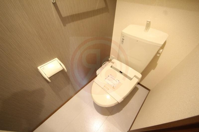 落ち着いた色調のアクセントクロスが印象的なトイレには、日々の生活を快適にする温水洗浄便座が完備されています。手洗い付きのタンクを採用した機能的な設計となっており、限られた空間を賢く使いながら、常に清潔感を保ちやすい仕様が魅力です。シンプルながらも洗練されたモダンな内装は、毎日の何気ない時間にも安らぎを感じさせてくれる心地よい空間に仕上がっています。白を基調とした便器と落ち着いたフローリングの色合いが絶妙に調和しており、細部まで住まう人の快適さを追求したこだわりが感じられるお部屋です。