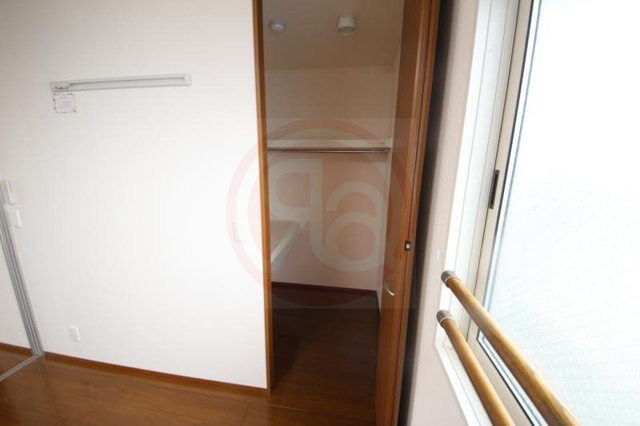 お部屋には、衣類だけでなく大型の荷物もまるごと収納できるウォークインクローゼットが完備されています。内部にはハンガーパイプと枕棚が設置されているため、お気に入りの洋服をシワにすることなく、季節家電やスーツケースなどもすっきりと整理することが可能です。扉付きの独立したスペースなので、居住エリアに生活感を出さず、常に広々とした洗練された空間を保てるのが嬉しいポイントとなっています。お荷物の多い方や二人入居を検討されている方にとっても、このゆとりある収納力は日々の暮らしをスマートに支えてくれる頼もしい味方となるでしょう。